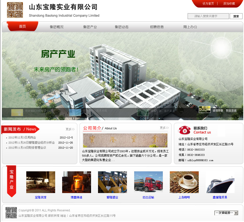 棗莊網(wǎng)站制作:山東寶隆實業(yè)有限公司成立于2003年,公司注冊資本金貳仟萬元,現(xiàn)有職工500余人。公司現(xiàn)擁有資產(chǎn)叁億余元,旗下涵蓋六個分公司。 公司總部位于山東省棗莊市工業(yè)園長江路15號,地處省級經(jīng)濟開發(fā)區(qū),南臨運河,北臨京福高速公路,西距京滬高鐵,距著名的旅游景區(qū)臺兒莊運河古城、微山湖濕地公園均40公里。地理位置優(yōu)越,交通便利,環(huán)境優(yōu)美。 公司是一家以銷售煤炭、石膏、水泥、熟料等建筑材料為主營業(yè)務,以生產(chǎn)和經(jīng)營耐磨材料、塑編袋、物流運輸、化工原料、地熱材料為輔營業(yè)務,同時經(jīng)營房地產(chǎn)行業(yè)的綜合性集團化私營企業(yè)。公司自成立以來,經(jīng)營業(yè)績穩(wěn)定提升,與中國聯(lián)合水泥集團有限公司(CUCC)、棗莊礦業(yè)集團等多家大型企業(yè)建立了長期穩(wěn)定的戰(zhàn)略合作伙伴關(guān)系。 寶隆實業(yè)始終秉承著“恪守誠信,追求卓越”的經(jīng)營理念,以“誠實守信、客戶至上”為營銷宗旨,遵循“平等互利、合作共贏”的原則;以“樹寶隆形象,創(chuàng)寶隆品牌”為目標,艱苦奮斗、務實創(chuàng)新,公司在激烈的市場競爭中表現(xiàn)出巨大的進取心,煥發(fā)出蓬勃生機,用誠信和實力創(chuàng)造寶隆曠世偉業(yè),這是寶隆人不懈的追求! 2011年,寶隆實業(yè)已走過九年的發(fā)展歷程,九年,在漫長的歷史長河中只是短暫的瞬間,但對于寶隆人來說,這是一段永載史冊、奮發(fā)有為、成就百年基業(yè)的創(chuàng)業(yè)歷程,寶隆人用青春、汗水、和智慧譜寫了一曲華彩樂章。九年的櫛風沐雨,九年春華秋實;九載磨礪拼搏,九載碩果累。九年的堅守、堅韌、堅持,所有的積累,所有的沉淀,讓寶隆實業(yè)增強了實力和能力,讓寶隆人增添了勇氣和底氣,寶隆實業(yè)在激烈的市場競爭中敢于亮劍,敢于向世界一流巔峰企業(yè)發(fā)起挑戰(zhàn),這是全體寶隆人時刻保持著的、永遠都不可磨滅的寶隆意志。 今天,寶隆人在此收拾好往日的榮耀。明天,寶隆人又將迎著朝陽,帶著堅毅的目光,踏上任重道遠的征程,朝著下一個光輝楊帆遠航…… |